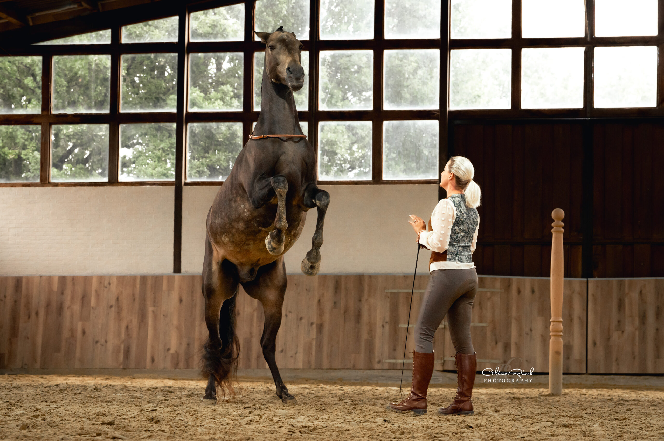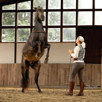 Als Mitglied der Ritterschaft beschäftigt sie sich intensiv mit den Lehren der Akademischen Reitkunst. Außerdem gilt ihre besondere Leidenschaft der Freiarbeit im Reiten und am Boden.