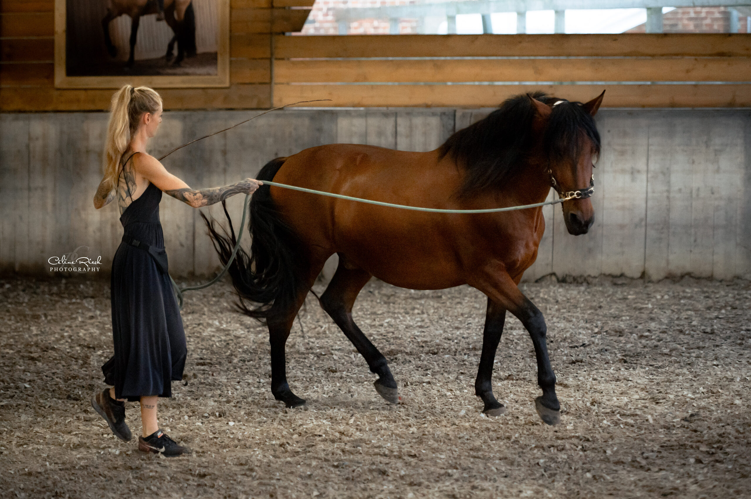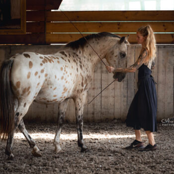 Neben der gymnastizierenden Freiarbeit arbeitet sie auch gerne mit mehreren Pferden gleichzeitig. Diese Arbeitsweise kann die Motivation, Energie und das Lernverhalten der Pferde positiv beeinflussen und bietet eine wertvolle Möglichkeit, sie abwechslungsreich, aufmerksam und ganzheitlich zu fordern und zu fördern. Durch das gemeinsame Arbeiten entstehen neue Impulse, mehr Eigeninitiative und ein lebendiger Lernraum, in dem Pferde voneinander profitieren können.